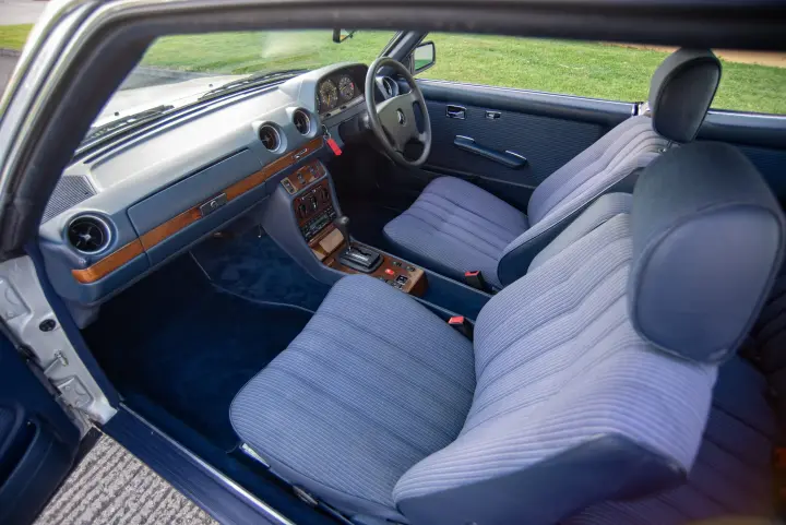 Sold new in October 1984, this 230CE was specified with the classic combination of Astral Silver paintwork contrasted by a blue cloth interior; electric windows front and rear, electric sunroof, front armrest, Becker Mexico and alloy wheels.