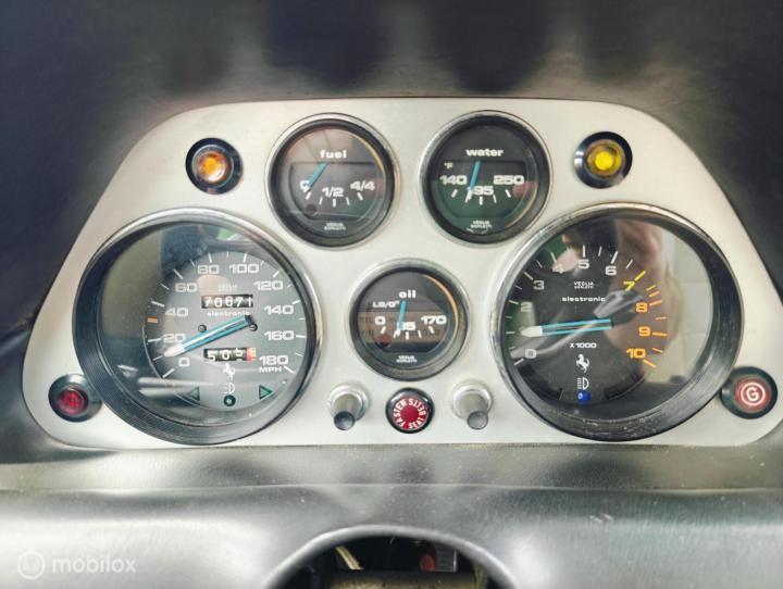 We verkopen deze mooie Ferrari voor oudere heer die goed geïnvesteerd heeft in de auto. Totaal afgelopen jaren meer dan 20.000 euro geinvesteerd. Rekeningen aanwezig. De motor is nog maar net gereviseerd en na wat inrijden is hij op de testbank geklokt op 250 pk bij 6500 toeren, gemeten aan de wielen. Een zeldzaam hoge waarde volgens de man van de vermogens bank voor deze motor. De uitlaat is vernieuwd, remmen, ophangingrubbers, overal rekeningen van. Het is een vroege 308, geen Vetroresina (polyester), maar wel met de carburateurs, en dat is een feest voor de oren.