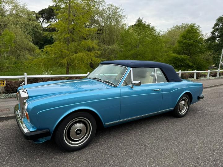 This beautiful example of a Mulliner Park Ward Corniche was registered new on the 24th of January 1980. Finished in stunning metallic Mediterranean Blue, Magnolia leather interior with a new dark blue mohair hood and a new headlining. The hood is electrically operated. Electric front seats and electric windows. In October 202 the vehicle had an upgraded Alpine radio fitted and Avon Whitewall tyres. This vehicle has covered Only 49,000 Miles. The previous owner has owned the vehicle since 2009 and has been on many Rolls-Royce rallies and attended many meets with the club. The vehicle has a large history file filled with invoices and MOT's.