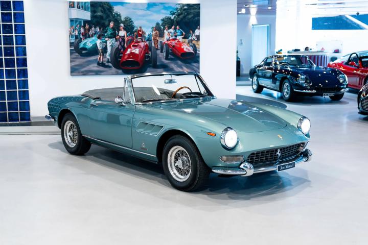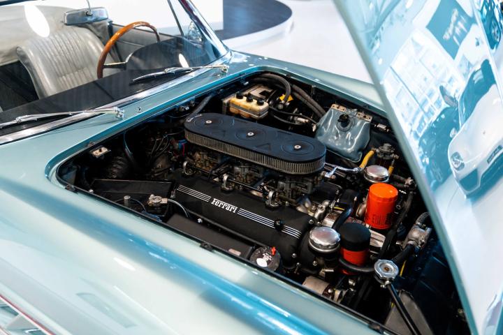 It sits today in beautiful condition and retains its factory correct colour combination of Blu Celeste over Grigio leather. The car has been awarded red book Classiche Certification from the Ferrari factory, confirming its original colour scheme, as well as its matching numbers engine and gearbox. One of only 200 examples built, this stunning 60’s V12 convertible would make a fantastic addition to any Ferrari collection. Contact us now for more information or to arrange a viewing.